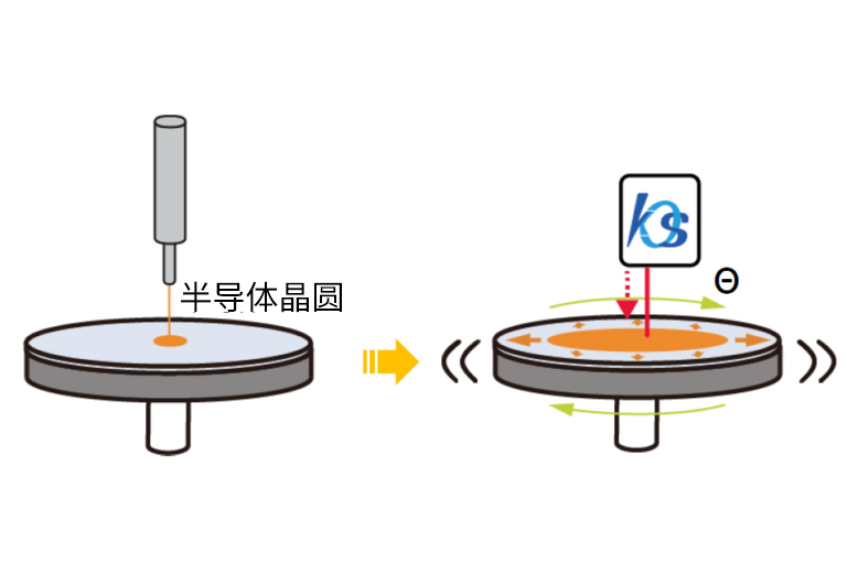 通过使用倾斜传感器测量角度,可以在旋涂机工艺中简单地非接触地检查半导体晶圆的倾斜和高速旋转时的振动。此外,能够提高光刻胶涂布工艺的良率。